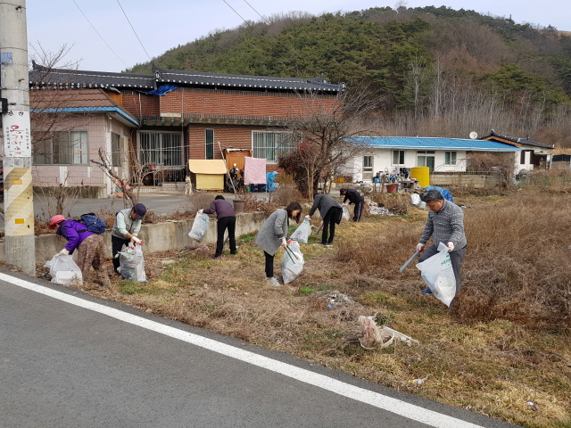 장애인일자리, 공공근로 등 일자리사업인력과 읍사무소 직원 등 20여 명이 참여하여 플라스틱, 유리병, 폐비닐 등 약 5t가량을 수거했고 쓰레기 배출장소 주변도 정리했다.