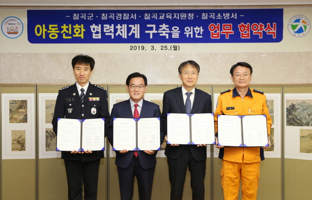 이날 협약식에는 백선기 칠곡군수, 김형률 칠곡경찰서장, 권순길 칠곡교육지원청 교육장 김용태 칠곡소방서장 등 유관기관 관계자들이 참석해 아동친화도시 조성을 위해 협력하기로 약속했다.