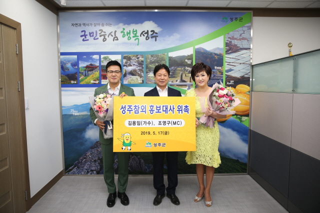 가수 김용임, MC 조영구 성주참외홍보대사 위촉【경상포커스=전상철기자】성주군은 17일 2019년 성주생명문화축제·제6회 성주참외페스티벌 기간 중 가수 김용임과 MC 조영구를 성주군과 성주참외를 널리 홍보하는 “성주참외홍보대사”로 위촉했다.