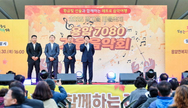 【경상포커스=김경희기자】성주군 용암면은 10월 30일 용암면 복지회관 잔디광장에서 500여 명의 주민들이 모인 가운데 2025년 용암면 별고을 마을축제 용암7080 가을 음악회를 성황리에 개최했다.