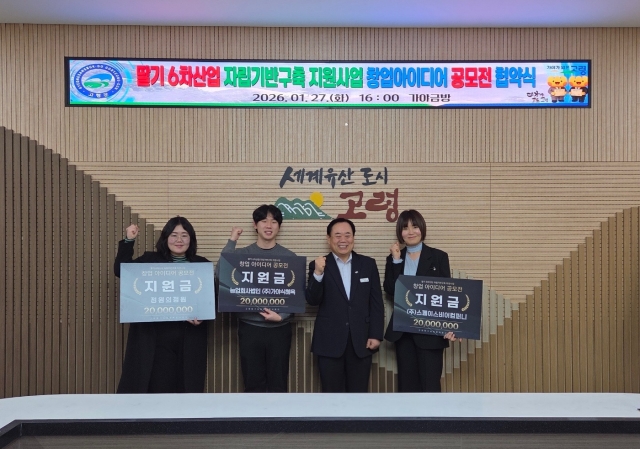 딸기 6차산업 자립기반구축 지원사업 창업 아이디어 공모전 수상자 3팀 선정![]() 【경상포커스=김경희기자】고령딸기농촌융복합사업추진단은 2026년 1월 27일(화) 고령군청 가야금방에서「딸기 6차산업 자립기반구축 지원사업」 창업 아이디어 공모전 수상자 3팀을 선정했다.